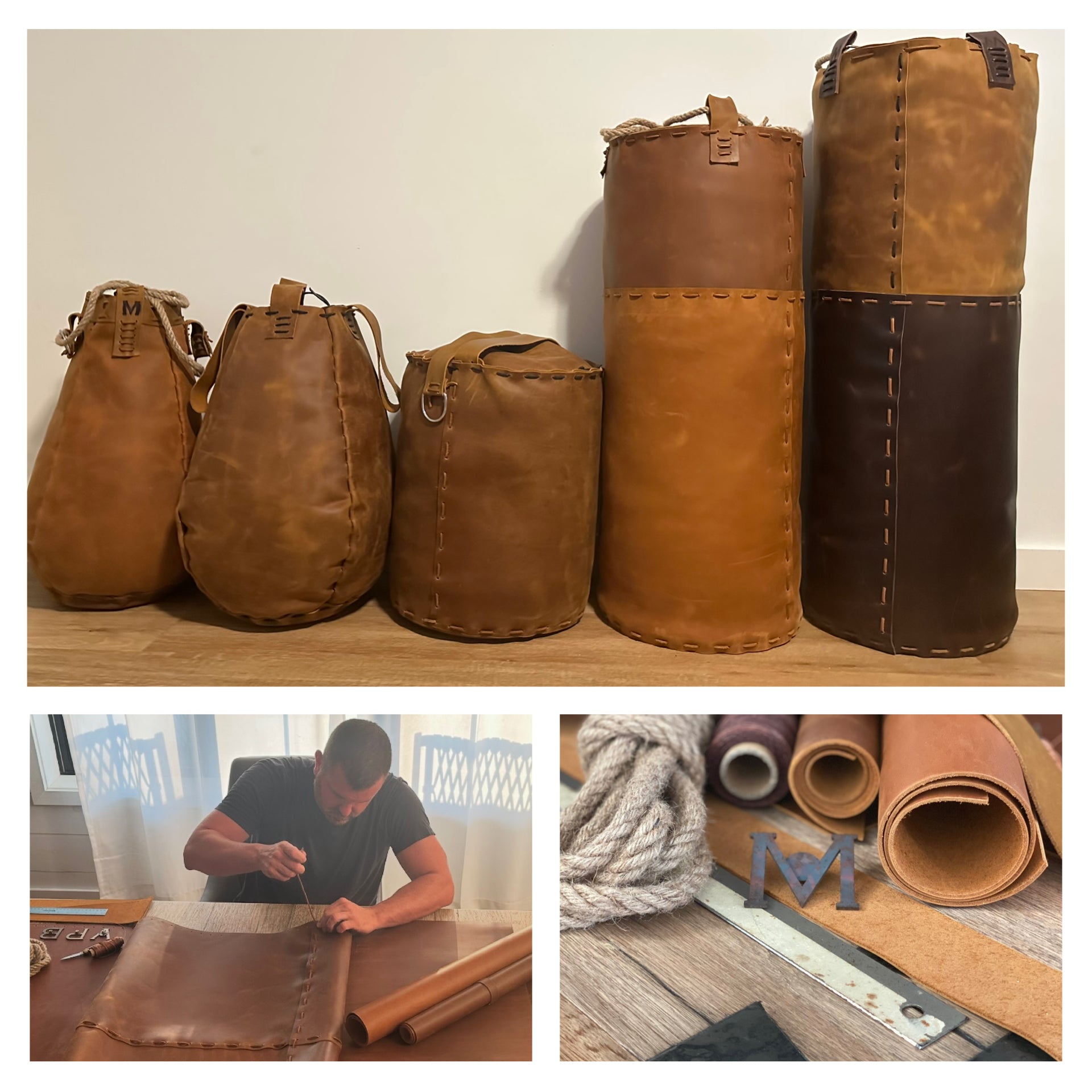 Our passion is to build vintage punching bags that pay homage to the greatest era and origin of boxing. Our family owned company started with the re-innovation of the original Maize bag which focuses on perfecting technique and punching power. All of our bags are handmade with thick 2mm full grain leather including 3mm lacing for our Maize bag and 4mm lacing for our Vintage heavy bags which give them a distinct and timeless look as well as improved strength and durability. Our bags are crafted entirely by hand and take meticulous focus and care to create, therefore we ask you to be patient as they may take up to 7-10 days to construct. We also take custom orders and will create something personal and special for you. All products are proudly handmade in the USA.